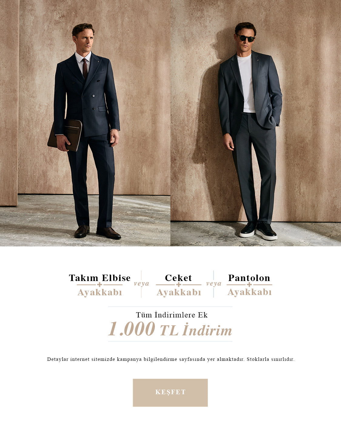 Abdullah Kiğılı, özenle hazırlanan takım elbise koleksiyonlarıyla her ortamda güçlü bir duruş sergilemenize yardımcı oluyor. Klasik stilini korumak isteyenler için regular fit, daha modern bir görünüm arayanlar içinse slim fit takım elbiseler ideal seçimler sunuyor. Takım elbise kategorisinde ayrıca yelekli modeller, kruvaze kesimler, smokin & damatlık alternatifleri ve büyük beden seçenekleri de bulunuyor.
